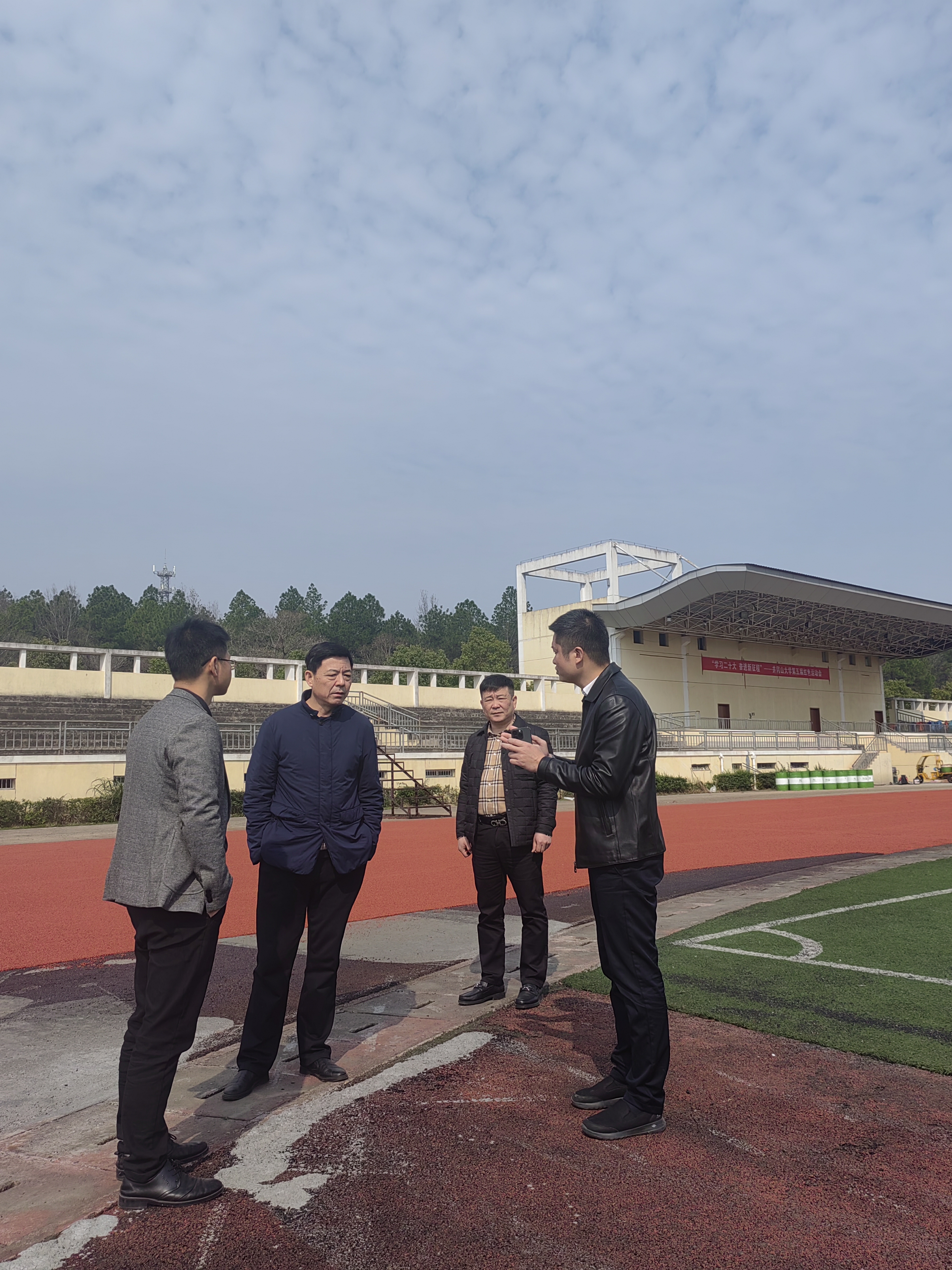 2023年2月22日上午,校党委常委、副校长李军在后勤保障负责人的陪同下,深入北区第7栋学生公寓建设工地、北区田径场跑道翻新改造现场、校园变电站等处,实地调研指导重点工程项目建设。