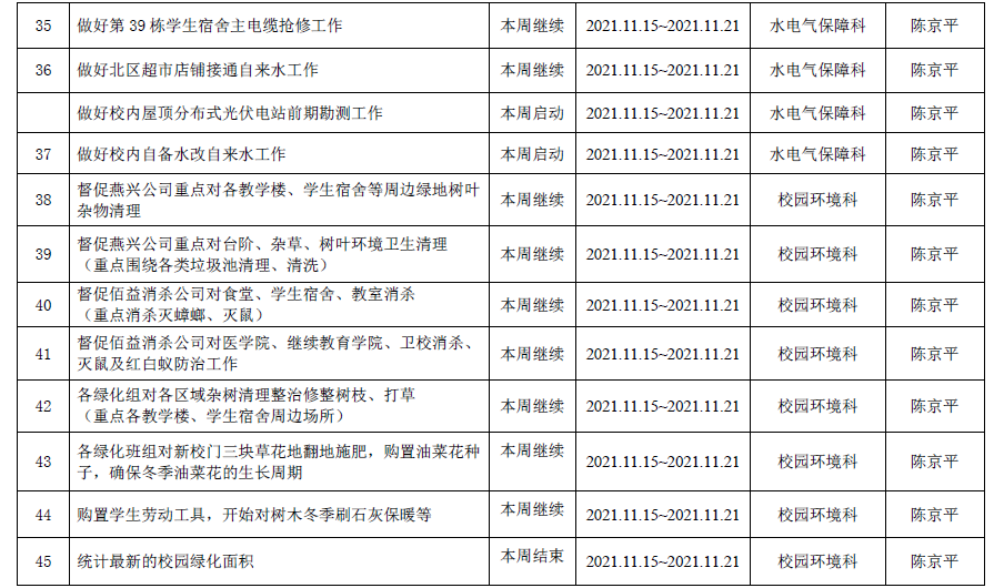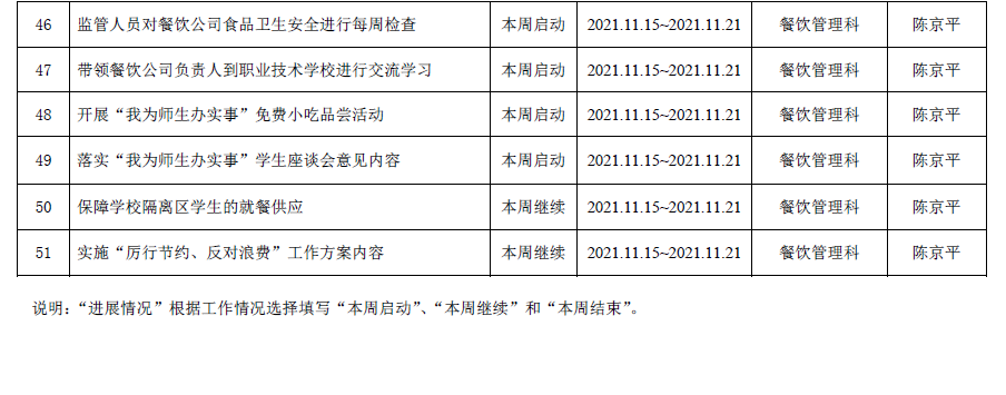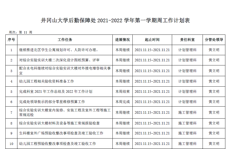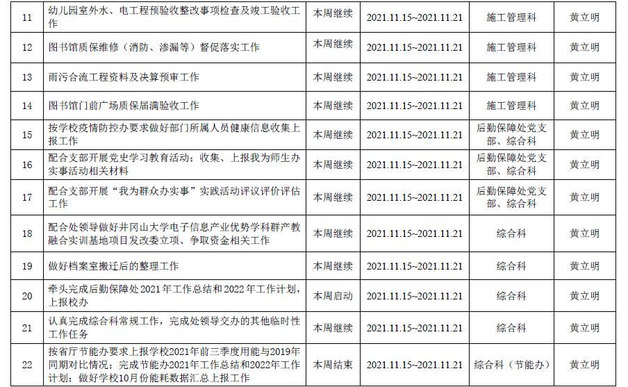 2021--2022学年第一学期第11周工作计划表
