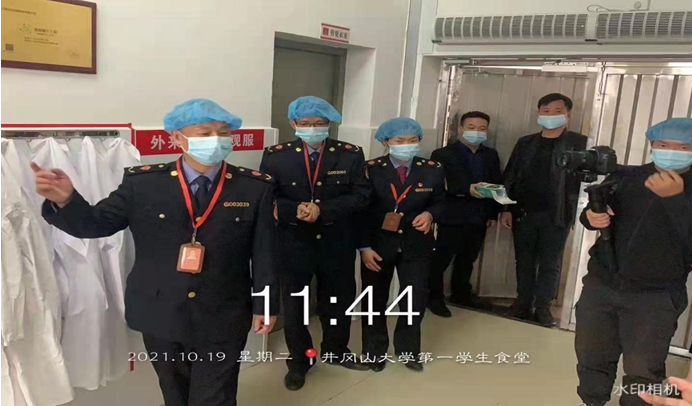 2021年10月19日,青原区市场监督管理局有关局领导率工作组专程来校,就《食安吉安》栏目拍摄工作深入学生食堂取景,我处相关负责同志全程参与、积极配合。