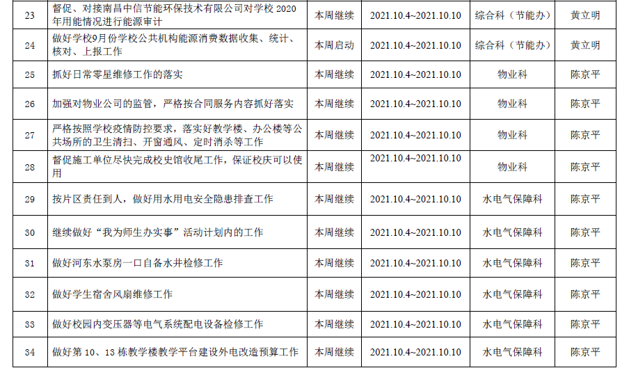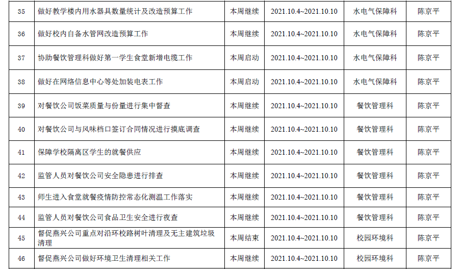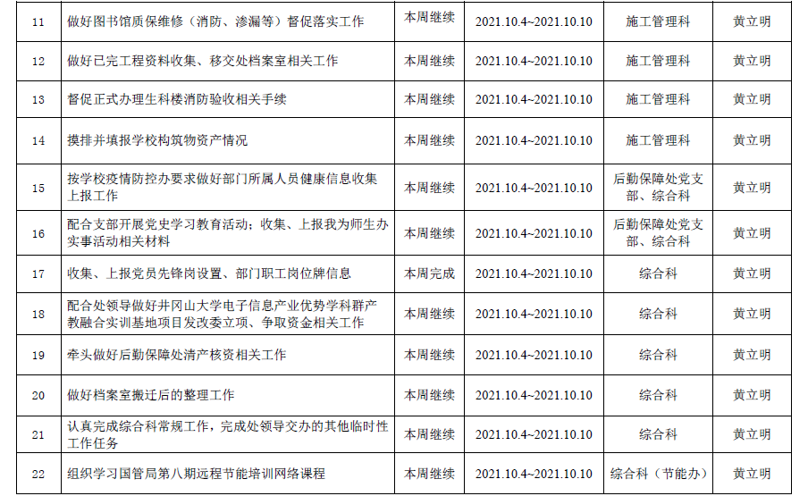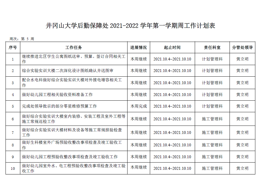 2021--2022学年第一学期第5周工作计划表