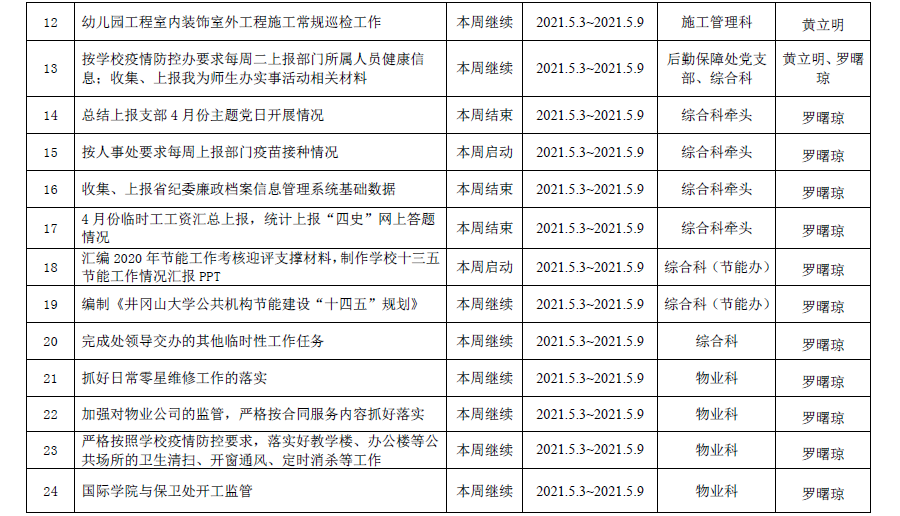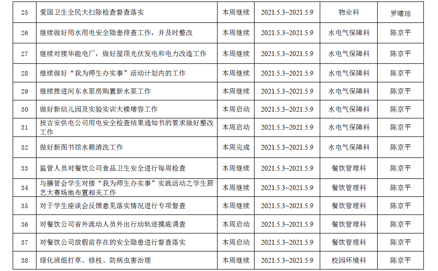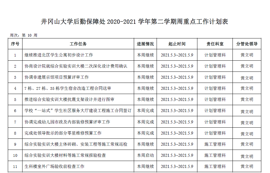 第二学期第10周重点工作计划表(2020-2021学年)