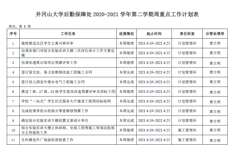 第二学期第8周重点工作计划表(2020-2021学年)