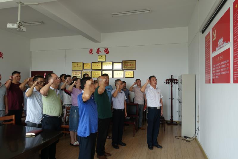 党课结束前,党总支组织全体党员重温入党誓词,大家面对党旗,高举右手,庄严宣誓,铿锵有力的誓言,体现了党员同志们对中国共产党的无限忠诚。