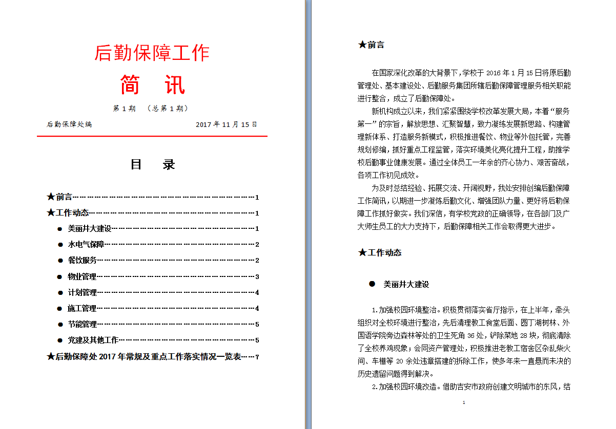 后勤保障工作简报 第 1期
