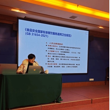 专家组结合近两天的现场检查情况,精心制作培训课件,为学校食堂管理工作人员进行专题培训,重点从食品安全主体责任、食品安全规范操作标准、食品安全常见风险点及防控措施方面进行授课,参训人员受益匪浅,纷纷表示要将所学知识充分运用到今后工作中,不断提高自身管理能力和服务水平。