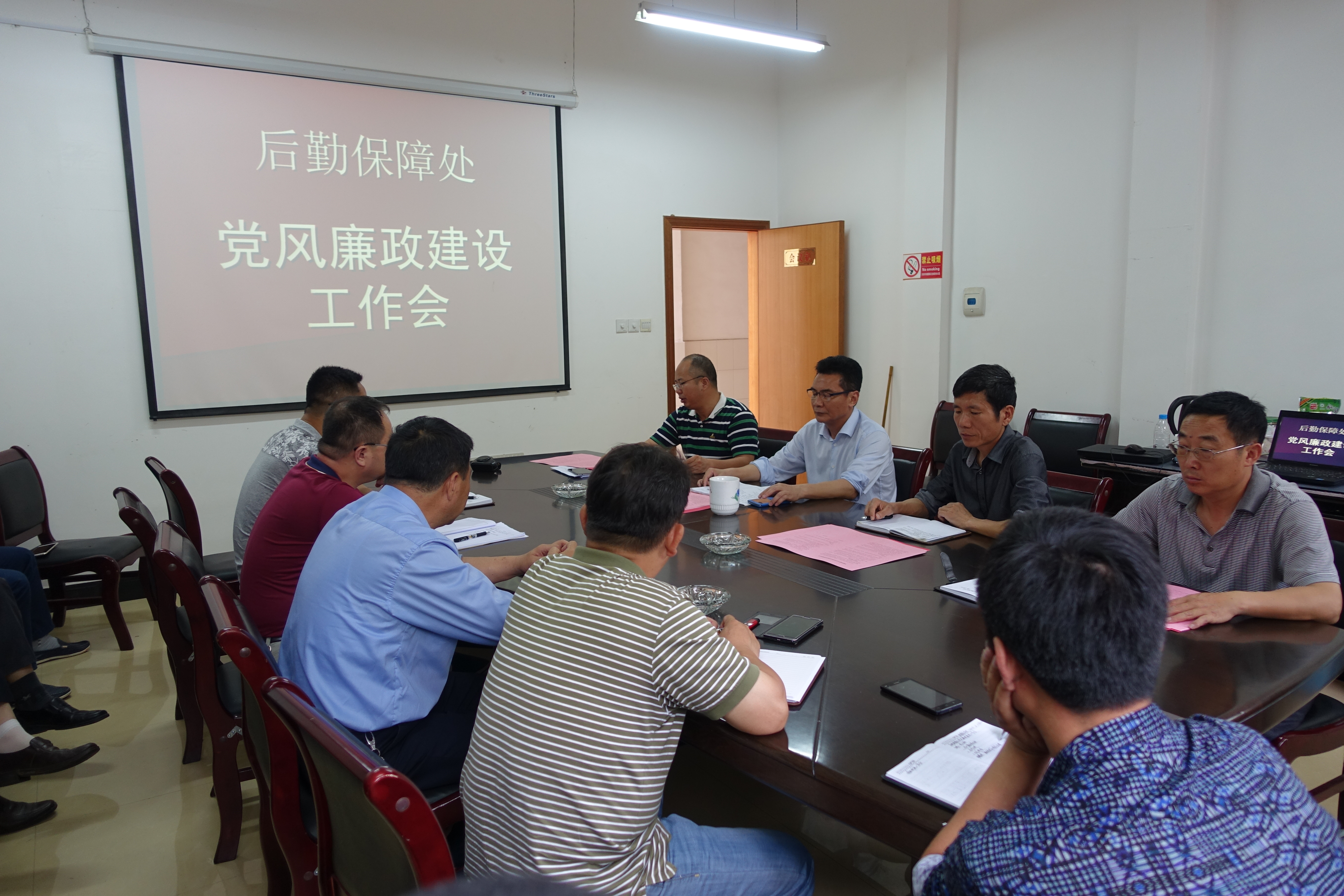 近日,后勤保障处以开展“两学一做”学习教育为契机,组织全处党员上了一堂以“抓党风廉政建设,争做合格党员”为主题的党风廉政建设专题党课,万良华处长主讲。万良华首先传达了学校6月3日召开的“两学一做”学习教育工作推进会上彭涉晗书记、曾建平校长和肖长春副书记的讲话精神,并按照 “谁主管,谁负责”的原则,处长和副处长、副处长和各科室负责人层层签订了党风廉政建设责任书。之后,万良华结合后勤工作实际,从层层传导压力之需、为人之道之需、家庭稳定之需、民心所愿之需四个方面,重点讲述了落实党风廉政建设的重要性和时代性,并从增强责任意识、底线意识、规矩意识等方面阐述了如何做好党风廉政建设工作。最后,他要求全处党员争做新形势下的合格党员,做到信念坚定、纪律严明、道德高尚、知行合一,并勉励全处党员持之以恒地做好党风廉政建设工作,管好自己、管好身边人,鼓足干劲、勤勉工作,共同开创后勤工作新局面。