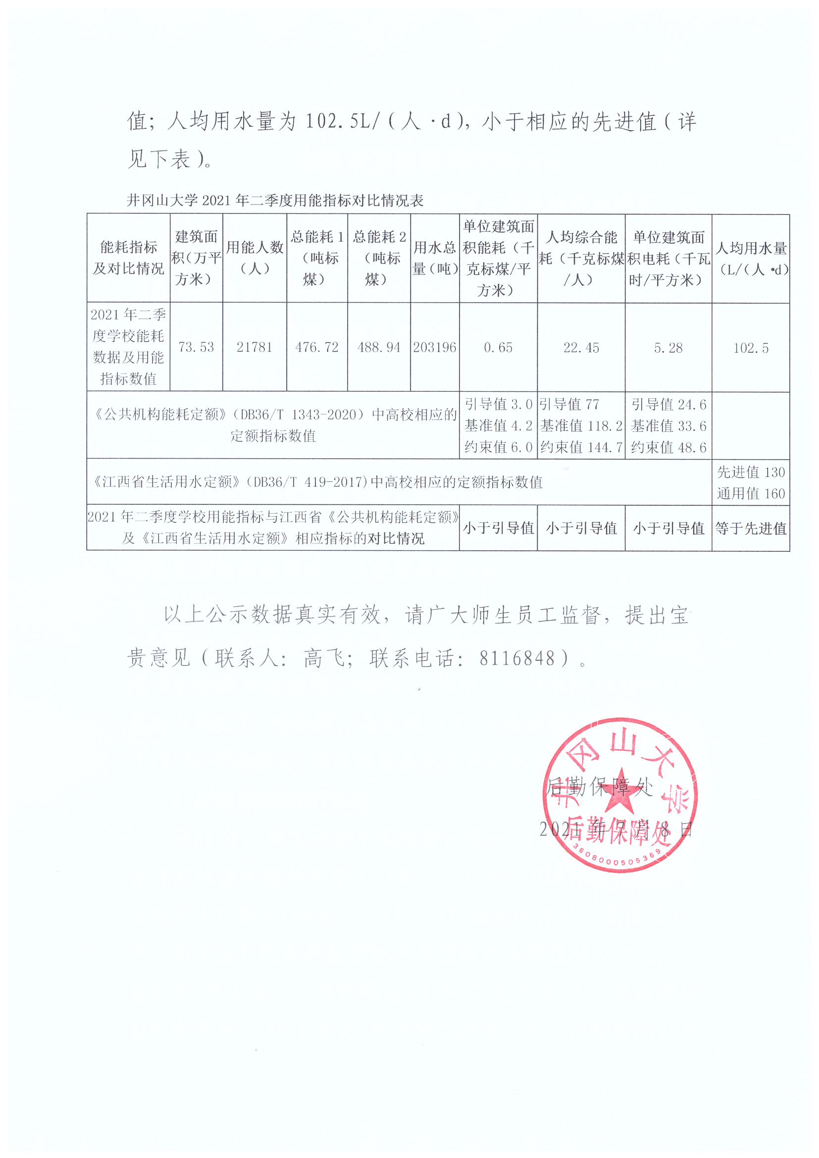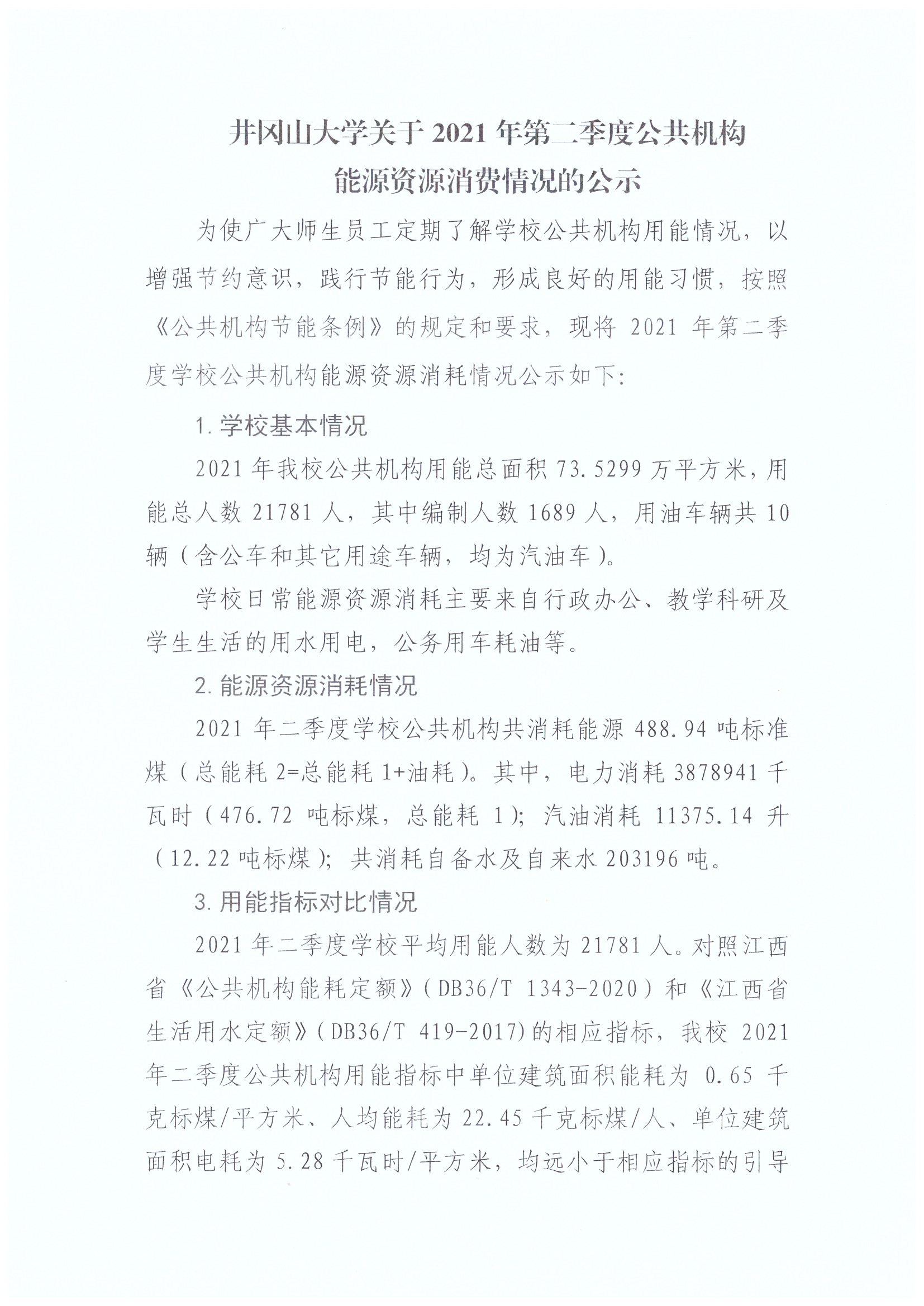 井冈山大学 2021年第二季度 能源资源消费情况公示